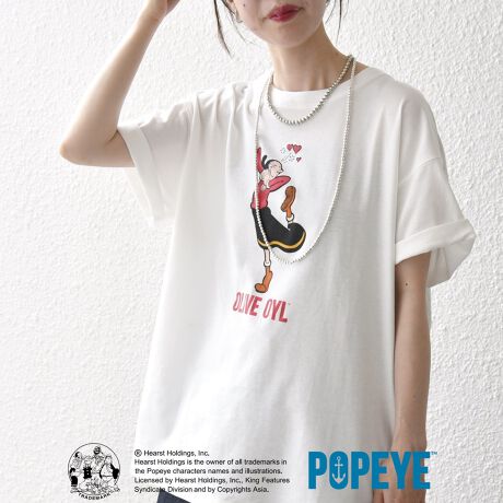 人気キャラクター「ポパイ(TM)」の恋人「オリーブオイル(TM)」のプリントTが登場。