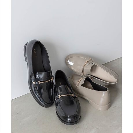 ゴールドのビットがアクセントになるローファータイプのレインシューズ。