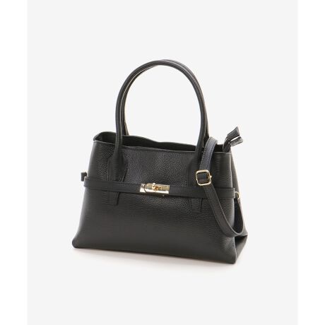 イタリア製のなめらかな本革を贅沢に使用した、金具付きレザーミディアムバッグ。