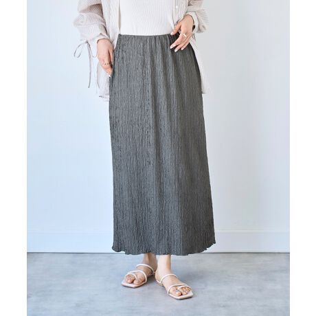 細やかな凹凸感のある楊柳素材が縦のラインを引き立て、スタイルアップを叶えてくれる一枚。