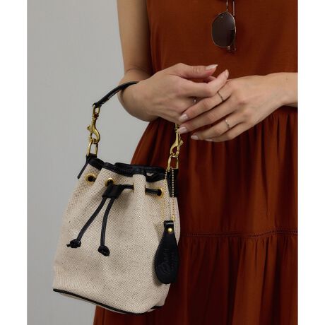手持ちとショルダー両用の巾着型バッグ「ELY」。