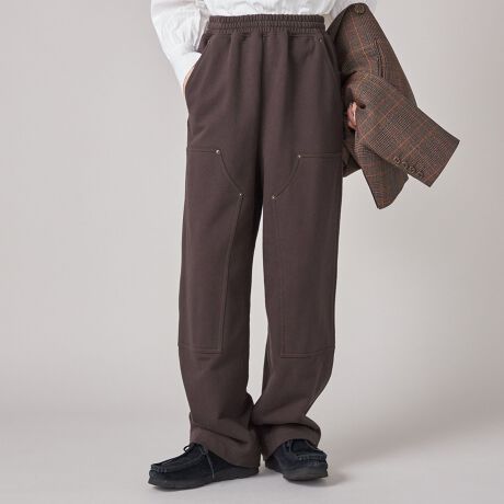 トレンドアイテムのダブルニーのパンツをベースに裏毛素材にしリラックス感のあるイージーパンツに仕上げました。