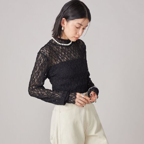 SHIPS NINE CASE:〈手洗い可能〉シアー レース ハイネック プルオーバー