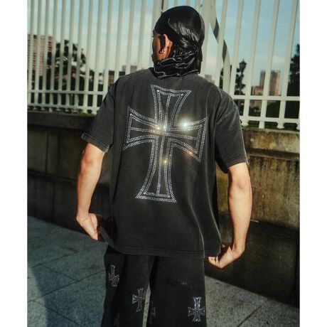 ブランドのシグネチャーデザインでもあるクロスロゴラインストーンがポイントのTシャツ。