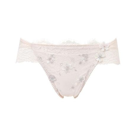 −幸せを運ぶスズラン− フランス・パリ街中がミュゲ(スズラン)であふれる初夏のパリ。フランスにはミュゲを大切な人と贈り合う「ミュゲの日」があり、受け取る人だけでなく、贈る人にも幸せが訪れると言われています。そんな素敵な習慣にちなみ、可憐なケミカルアップリケをふんだんに飾ってロマンティックなデザインに。ラッキーチャームが幸せを運んできてくれそう。・フロントは裏打ち付きで透けにくい・アイラッシュレースの上にチュールエンブロイダリーレースを重ね奥行き感を表現・クリスタルやラメ糸で輝きをプラスした2種類のケミカルアップリケがポイント