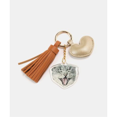 スコティッシュホールドの猫ちゃんの日々の色んな表情をイラスト風にデザイン。フェイクレザーのタッセルなどしっかりと重厚感のあるキーホルダーになっています。大振りタイプなのでバッグに付けるだけでポイントになります。