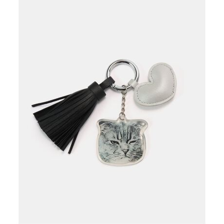 スコティッシュホールドの猫ちゃんの日々の色んな表情をイラスト風にデザイン。フェイクレザーのタッセルなどしっかりと重厚感のあるキーホルダーになっています。大振りタイプなのでバッグに付けるだけでポイントになります。