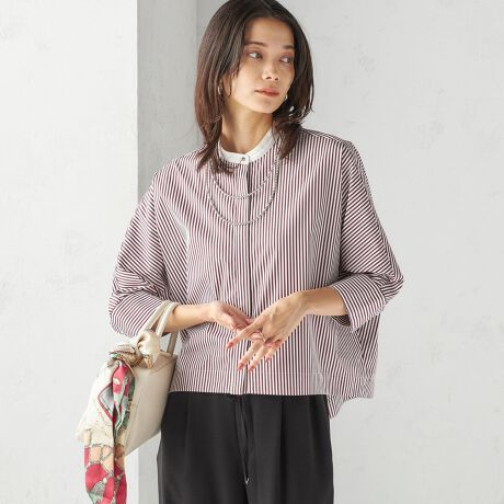 ドルマンスリーブのゆったりとしたシルエットですが、綿のハリ感を出しきちんと感を演出できるシャツにしました。
