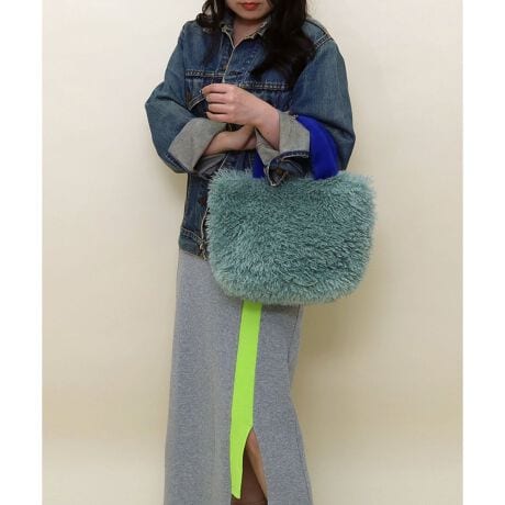 ハンドルにビビッドな配色を施したファーバッグ