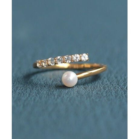 淡水パールとホワイトトパーズをあしらったフォークリング