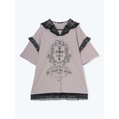 ゴシックなグラフィックプリントと甘さを演出するレース使いがポイントです。