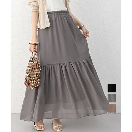エアリーなシフォン素材が、女性らしさを引き立てるティアードスカート。