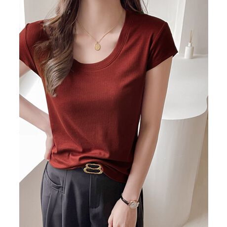 ほどよいフィット感が魅力の半袖リブTシャツ。