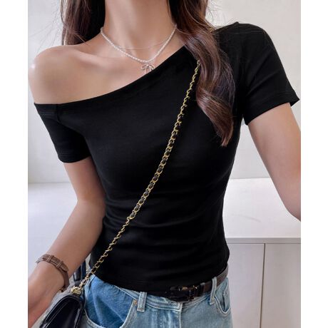 無駄のない洗練されたデザインが魅力の片肩オフショルダーTシャツ。