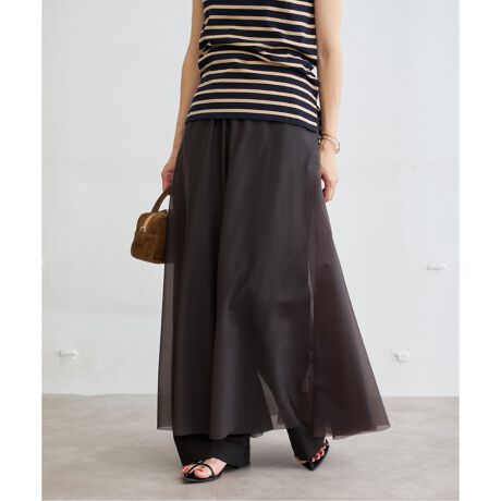ほんのりハリのあるシアー素材を贅沢に使用し、動くたびに美しく揺れるフレアシルエットが女性らしさを引き立てます。
