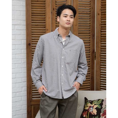 ギンガムチェックのボタンダウン襟シャツです。レーヨン混のオックス生地は柔らかな肌ざわりでしなやかな風合いに仕上げました。デニムと合わせたアメカジスタイルをお楽しみください。