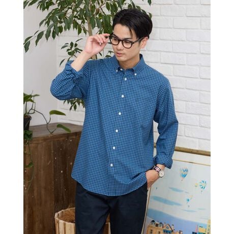 ギンガムチェックのボタンダウン襟シャツです。レーヨン混のオックス生地は柔らかな肌ざわりでしなやかな風合いに仕上げました。デニムと合わせたアメカジスタイルをお楽しみください。