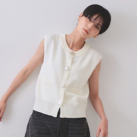 変形ブロンズボタンニットベスト【洗濯機洗い可】