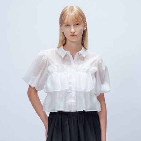 ・フリルが華やかなので、シンプルなボトムスと合わせると大人な着こなしに。