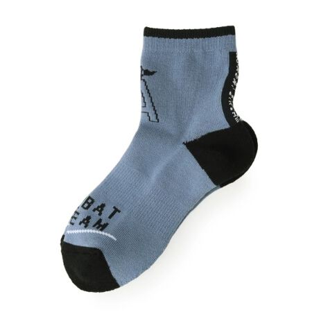 【履き口のバックサイドのジャカードロゴがワンポイントになるヒールロゴソックスヒールのADABAT STREAMロゴと、フロントのAマークがポイントのショートソックス】
