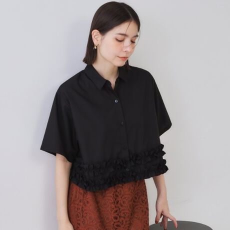 ・裾部分に2段フリルをあしらった華やかなデザインシャツ。