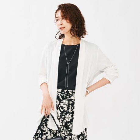 日差しも気になるので長袖に、衿元もカバーできる大人女性の夏に必須なアイテムです。