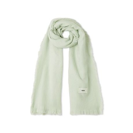 優しい肌触りが特徴的な無地のストール。FURFURのロゴをワンポイントにしたシンプルなデザインです。コーディネートに華やぎを与えてくれるIVR、MNT、PNKの3色展開になります。