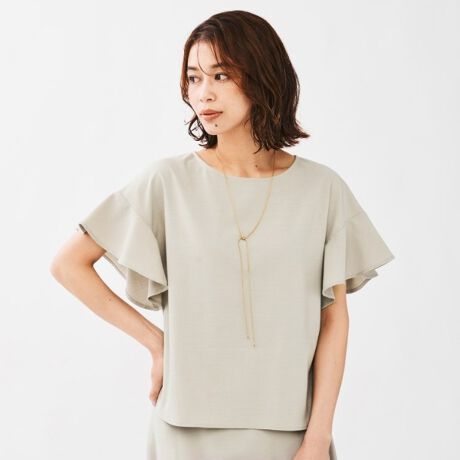 花びらのような華やかなフリル袖が女性らしいブラウスです。