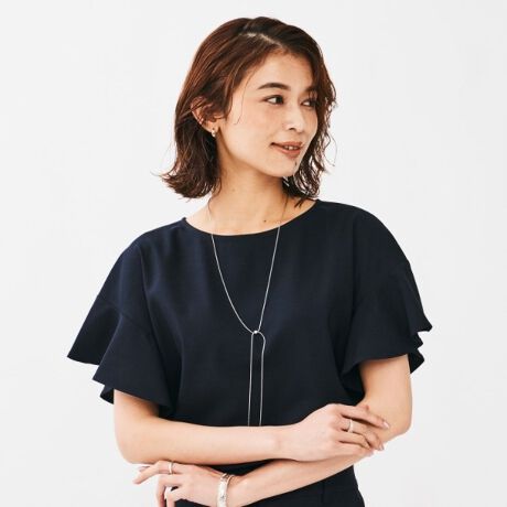 花びらのような華やかなフリル袖が女性らしいブラウスです。