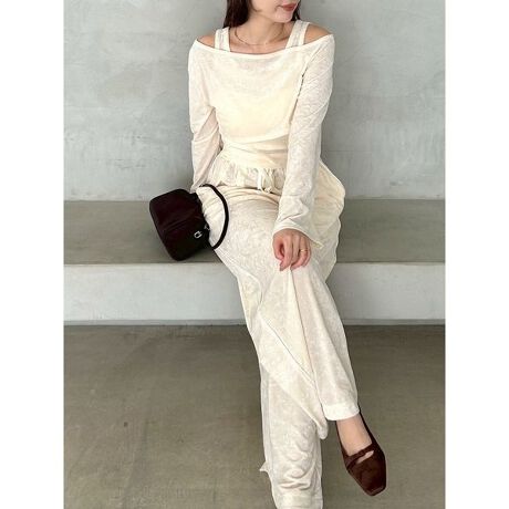 同素材のクラッシュベロアレイヤードカットソー(FWCT254181)とコーディネートして、カジュアルリラックススタイルにまとめるのもおすすめです。