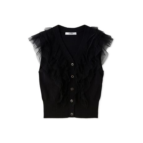 デコルテを美しく綺麗に魅せる、SNIDEL定番人気のチュールフリルをふんだんに挟み込んだ、毎シーズン人気のチュールフリルノースリニットが今季も登場。ボーダー柄も加えて4色展開にてお作りしました。柔らかなフリルディテールをフロントにたっぷりと取り入れてスタイリングを華やかに演出。襟ぐりは程よく抜け感をプラスするV開き、そして裾リブも太めに配置しており、ハイウエストボトムやボリュームスカートともバランスが取りやすいすっきりとしたデザインです。ボタンを閉めてノースリプルオーバーとしてのご着用がおすすめ。今季は、ボタンをフチありにしてリュクスに仕上げました。