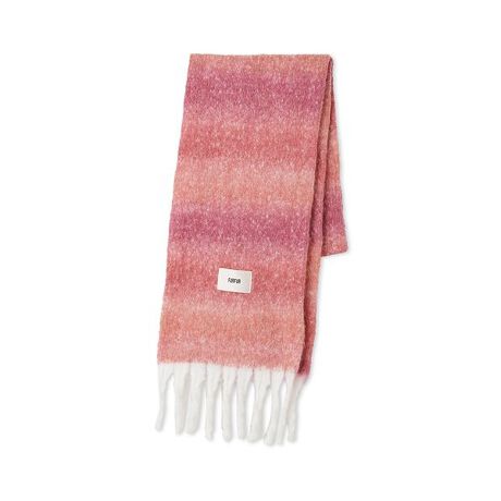 暖かみのある印象を持つ、グラデーションの利いたボーダー柄のストール。シンプルで使いやすいBLKと、コーディネートに華やぎを与えてくれるPNKの2色展開になります。ボリュームのあるフリンジも可愛らしいポイントに。