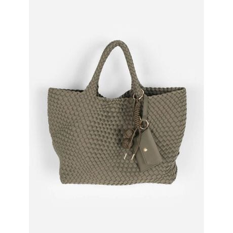 生地を編み込んだデザインが目を惹くイントレチャートトートバッグ。
