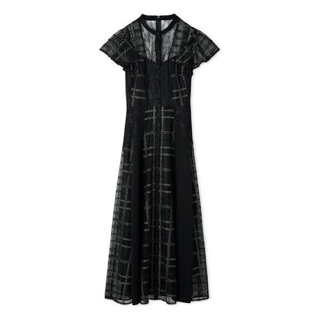 チュール素材にチェック柄の刺繍を施したチェックエンブロイダリーレースと、目が細かく繊細な印象の花柄チュールレースを使用。