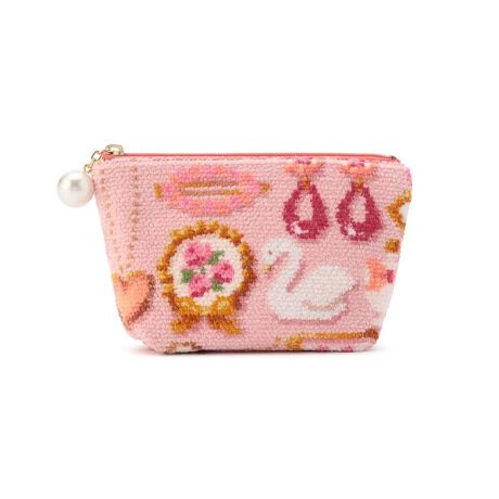 日々のおしゃれにかかせない、たくさんのアクセサリーが描かれた『ドレスアップガール』の舟型ポーチSです。存在感のあるイヤリングやかわいいリボン、大きなハートのネックレスなど、魅力的なアクセサリーにうっとりしてしまいそう。リップや目薬、イヤホンなど、ちょっとした小物を入れるのに重宝するアイテムです。同柄のハンカチとセットにしてプレゼントにいかがでしょうか。