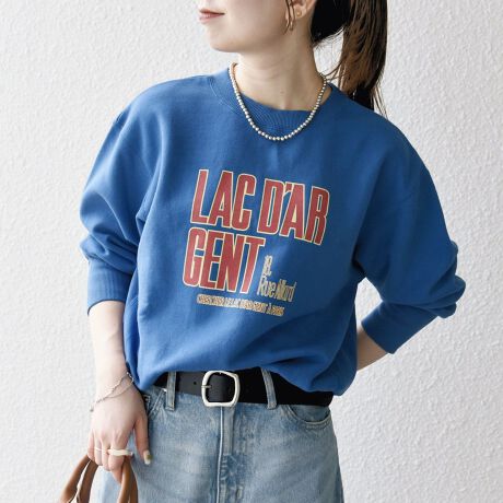 デザイン性のあるロゴプリントがコーディネートのアクセントになるスウェットプルオーバー。