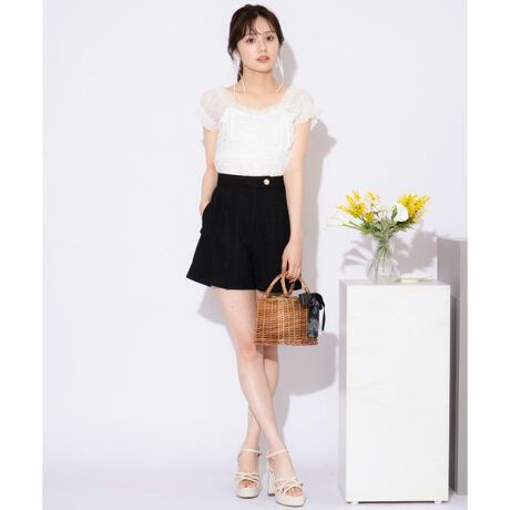 大人フェミニンに着こなす、パールボタンショートパンツ【Design】・暑さが増す季節だからこそ楽しみたい、軽やかなショートパンツ。・きちんと感のあるきれいめシルエットで、大人のバランスコーデが叶います。・フロントに並んだパールボタンが、さりげなく華やかなアクセントをプラス♪・バックゴム仕様でストレスフリーな着心地を実現し、一日中快適に過ごせます。・後ろポケットはフェイクながら、シルエットを引き締めるポイントに◎【Fabric】・落ち感のあるポリエステル×レーヨン混素材で、しなやかな肌ざわりと上品な質感が魅力。・動きによってラメ感のある生地がこだわりポイント。・裏地付き・ホワイト、ピンク、ブラックの3色展開となります。【Care】ドライクリーニング