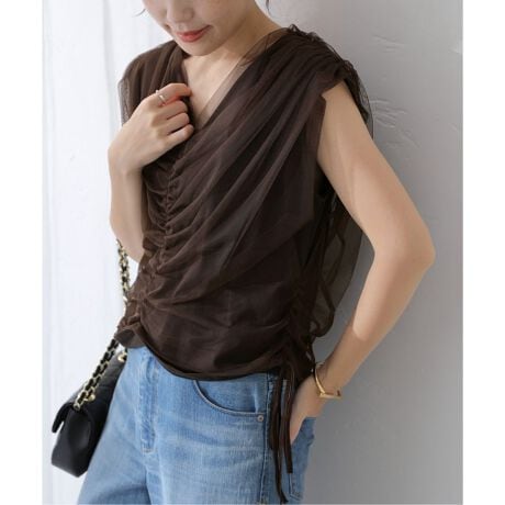 【洗える】チュールレイヤードギャザーカットソー