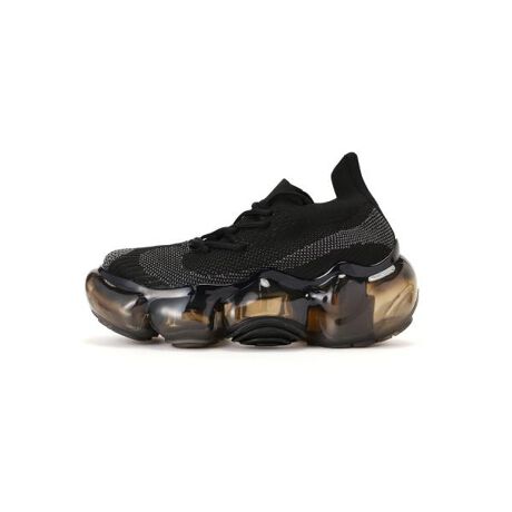 巨大なジェル状の何かを踏んでしまったようなフットウェア本来、体全体を支えるため頑丈であるべきはずのアウトソールを、あえて流動的で柔らかそうな形状にしてしまったところが遊び心をくすぐるデザイン。外側につけたラバーパーツがデザインにアクセントを加えています。アッパーはボリュームのある靴底とは対照的に華奢な仕上がりとなっています。シャープなシェイプと、土踏まずに作ったくびれ、つま先からかかとにかけて緩やかな傾斜をつけることで既存のスニーカーにはない上品でスラっとしたスタイルを印象づけています。またニットアッパーのアシンメトリーにレイアウトされたシューホールとパターンが抽象的なアウトソールのデザインを引き継いでいます。ヒールの高さはおよそ7cm。厚底でありながらも、靴底全体で体を支え、適度なクッション性を持たせることで、歩き疲れにくいように設計されています。grounds/グラウンズMIKIO SAKABEを手がけるデザイナー坂部三樹郎が監修するフットウェアブランド。「人間と重力(地球)の関係に変化をもたらすこと」「人間と重力(地球)の接点であるアウトソールと地面を中心とした人間づくり」をテーマに、ボリュームのある特徴的なアウトソールを組み合わせたフットウェアを発表しています。