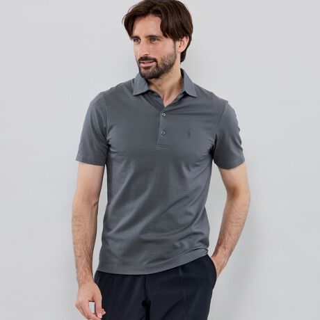 「FLEX JERSEY」や「BREASY JACKET」などのセットアップシリーズにベストなインナーとして企画開発されたドレスポロシャツです。ドレスTシャツのボディをベースに着丈のバランス、袖の設計をポロシャツ用に調整しています。
