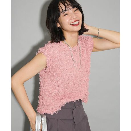 ふわふわとした表情豊かなチュールヤーン素材で仕立てたプルオーバー。ソフトな肌触りで伸縮性に優れ、合わせるボトムを選ばずデイリーに活躍します。一枚着はもちろん、シャツやTシャツをインに合わせたレイヤードスタイルも素敵。まだ暑い時期から秋らしい着こなしもお楽しみいただけるおすすめのアイテムです。透け感[ややあり]