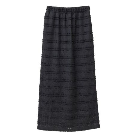 たっぷりのレースフリルがスタイリングを華やかに演出するデザインスカート。程よく脚のラインにフィットするナローシルエットは女性らしさをプラスします。バックスリット入りで歩きやすく、さらりと肌触りの良い裏地付きなのも嬉しいポイント。同素材で仕立てたプルオーバーとのセットアップやTシャツを合わせてカジュアルダウンしたスタイルもおすすめです。透け感[ややあり]