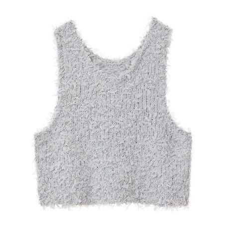 ふわふわとした表情豊かなチュールヤーン素材で仕立てたベスト。ソフトな肌触りで伸縮性に優れ、インナーと合わせてももたつかず快適に着こなせます。前後どちらを前にしても着用できる2WAY仕様なのも嬉しいポイント。まだ暑い時期から秋らしい着こなしもお楽しみいただけるおすすめのアイテムです。透け感[ややあり]