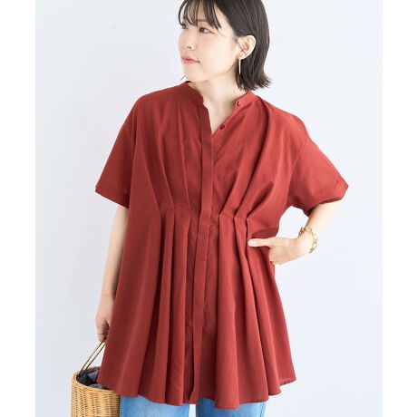 #Aライン#バンドカラーシャツ#チュニック丈#体型カバー#透け感#半袖#ヒップカバー#シャツワンピ風#夏#フレアシルエット#オフィス#レディース