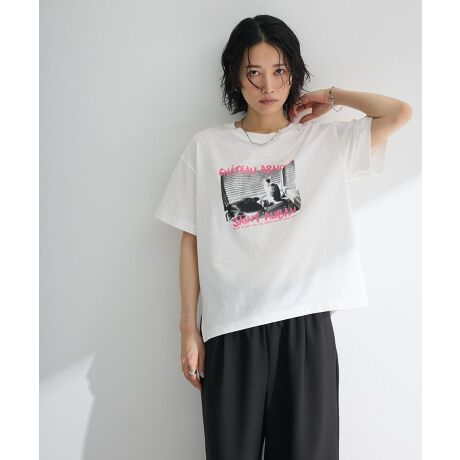 フロントのフォトプリントがトレンドライクなTシャツ。ゆとりのあるボックスシルエットで着心地良く、どんなボトムとも着合わせしやすいデザインです。カラー毎に異なるプリント柄をご用意。サイドスリット入りでトップスイン・アウトのどちらでもサマ見えするおすすめのアイテムです。透け感[ややあり]