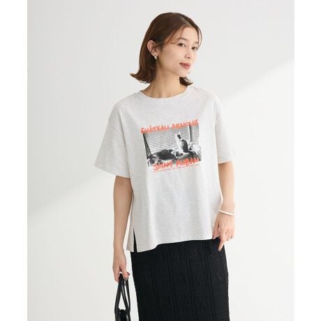 フロントのフォトプリントがトレンドライクなTシャツ。ゆとりのあるボックスシルエットで着心地良く、どんなボトムとも着合わせしやすいデザインです。カラー毎に異なるプリント柄をご用意。サイドスリット入りでトップスイン・アウトのどちらでもサマ見えするおすすめのアイテムです。透け感[ややあり]