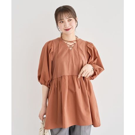 異素材を組み合わせたボリュームシルエットがお洒落なチュニック。前後どちらを前にしても着用できる2WAY仕様なのもポイントです。リボンを前でクロスしてホルターネックにアレンジも出来、幅広い着こなしが叶うのも魅力的。腰回りをカバーしてくれる長めの着丈で、自然とスタイルアップも叶うおすすめのアイテムです。透け感[ややあり]