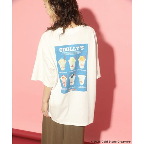 COLDSTONEとのコラボレーションアイテムにTシャツが登場。胸元には発泡プリントで表現したアイスモチーフでワンポイントを加えました。バックのクーリーズのラメロゴとメニュー風プリントが遊び心溢れるデザイン。ゆったりとしたオーバーシルエットでカジュアルに着こなせるおすすめのトップスです。透け感[ややあり]