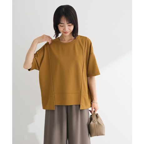 ドライタッチな肌触りのしっかりとしたリップル素材で仕立てたプルオーバー。ワイドなサイズ感ながら、斜めに施したテープパイピングがすっきりとしたシルエットを演出します。ベーシックなデザインに変形カットのヘムラインで抜け感をプラス。秋らしいシックなカラー展開にも注目です。透け感[なし]