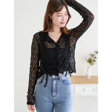 繊細で上品なレース生地とドロストデザインがモードライクなシャツ。